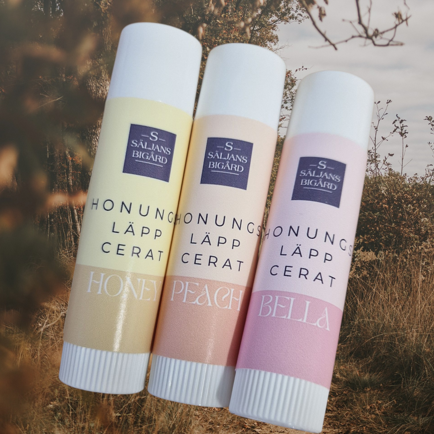 Paketet innehåller en Honungsläppcerat HONEY, en Honungsläppcerat BELLA samt en Honungsläppcerat PEACH.